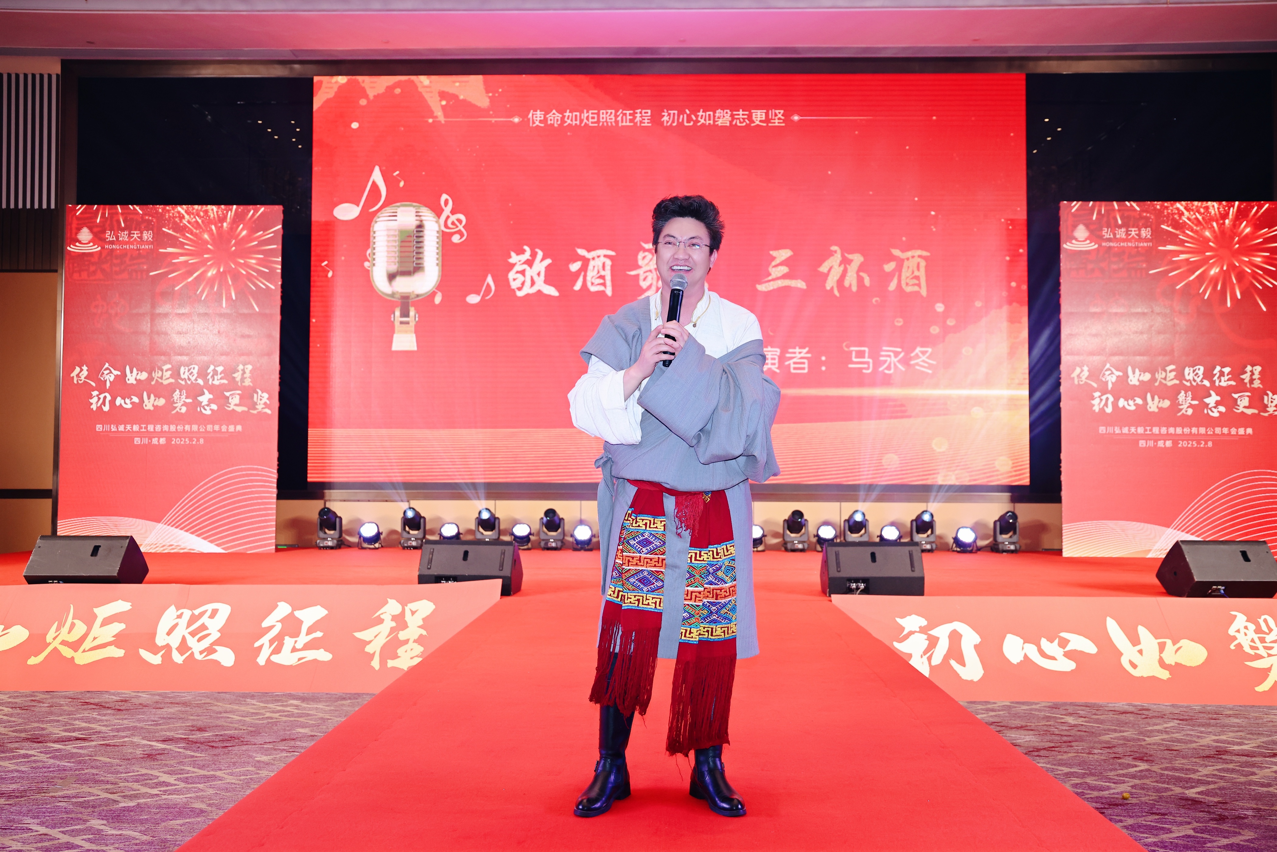 晚會節(jié)目絢爛多姿,盡顯弘誠天毅的才情與團(tuán)隊(duì)精神。在歡聲笑語中,藏族同事舉杯高歌,原生歌謠滿載熱情與喜悅,溫暖了整個聚會。歌聲中洋溢著對生活的熱愛、對友誼的珍視,以及對相聚此刻的滿滿喜悅與熱情,點(diǎn)燃了現(xiàn)場的氛圍,讓每個人的心靈都在這份純粹與熱烈中得到了最真摯的觸動。